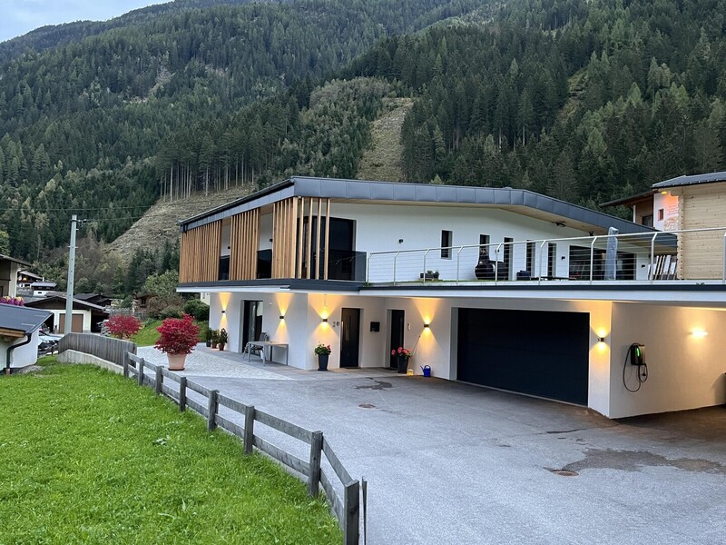 Parkmöglichkeiten: Ein überdachter Parkplatz (Carport) mit E-Ladestation steht direkt am Haus bereit.