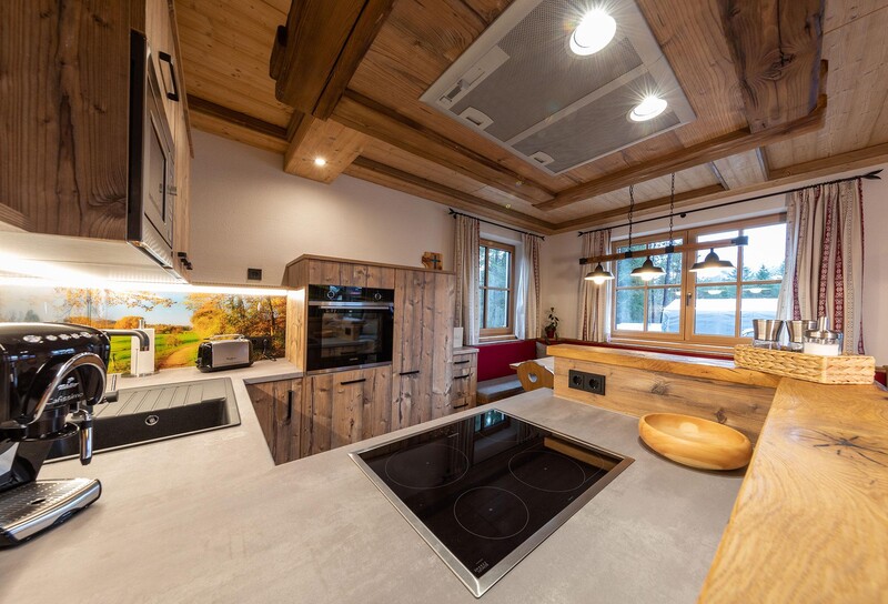 Im offenen Wohnbereich mit voll ausgestatteter Küche und gemütlichem Kachelofen lassen sich unvergessliche Momente mit Familie oder Freunden verbringen. Für erholsame Stunden sorgt das private Saunahaus mit eigener Dusche und WC. In den warmen Monaten laden die große Terrasse und der angrenzende Garten zu entspannten Grillabenden ein, während Kinder sich am eigenen Spielplatz, beim Slacklinen, Fußballspielen oder am kleinen Bach austoben können. Ein kinderwagenfreundlicher Waldweg führt in wenigen Minuten zur idyllischen Kneippanlage.