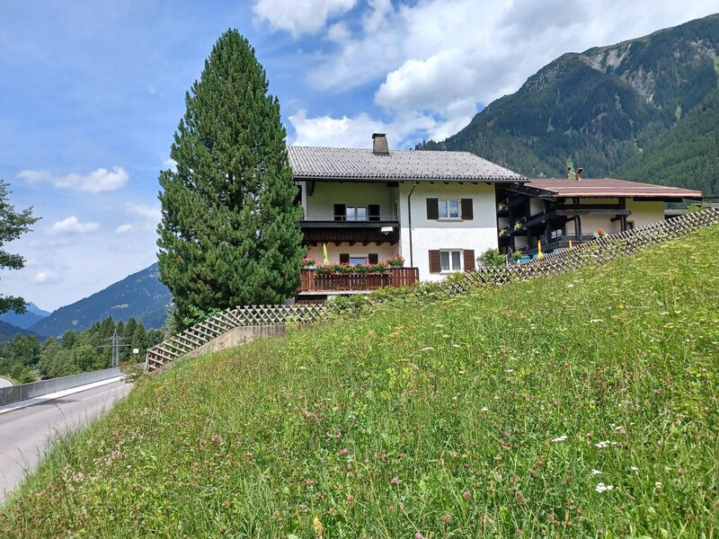 Unser Haus liegt direkt an der Dorfstraße von Gaschurn mit herrlichem Blick auf die beeindruckenden Berge.