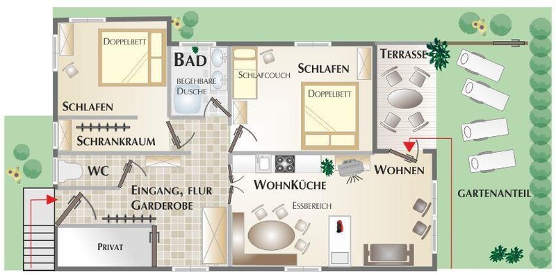Küchenzeile mit komfortable Küchenausstattung Geschirrspülmaschine, Kühlschrank mit kleinem Gefrierfach, Cerankochfeld, Backrohr, Microwelle, Filterkaffeemaschine, für Espresso Liebhaber -die kleine Dolce Gusto von Krups-, Wasserkocher, Toaster, etc.]. Die grosse, gemütliche Essgruppe bietet reichlich Platz. Badezimmer mit großer begehbarer Dusche. Der Doppelwaschtisch mit Unterschrank bietet reichlich Platz. Haartrockner vorhanden. 1 WC (separat)
