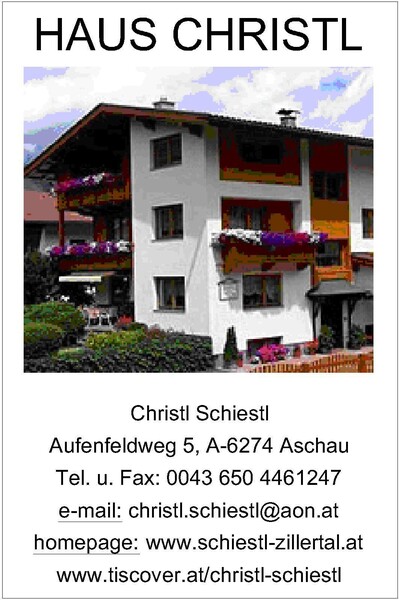 Anschrift: Aufenfeldweg 5 6274 Aschau Österreich Kontakt: Telefon: (0043) 650 4461247 Webseite: www.booking.com |