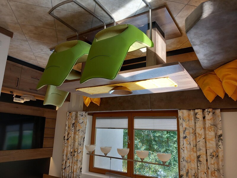 Eine komplett neu eingerichtete Wohnküche mit Sat-TV, Kaffeemaschine, Kühlschrank, Geschirrspüler,