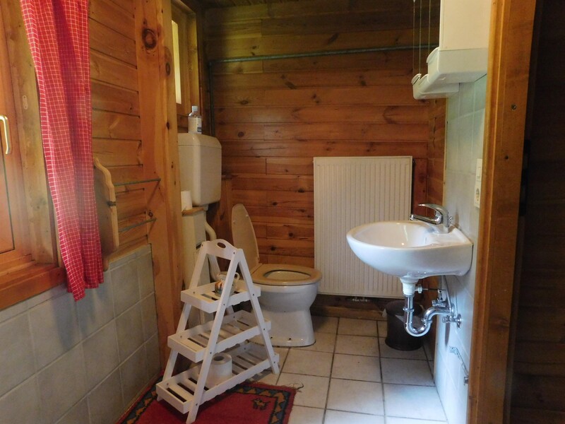 Gute Zufahrt, schattiger Parkplatz, Strom, Du/WC, Holzheizung, gemütliche Hüttenstube, Abstellraum, 2 Doppelbetten in einem Schlafraum im Dachgeschoß.