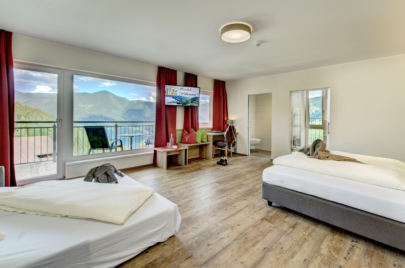 Alle Zimmer und Appartements verfügen über einen Panoramabalkon mit gigantischen Blick auf die Berge oder den See. Erwachen Sie morgens mit frischer Bergluft, über den Wolken und umgeben von Natur pur, sowie nicht zu vergessen einem gigantischem Ausblick.