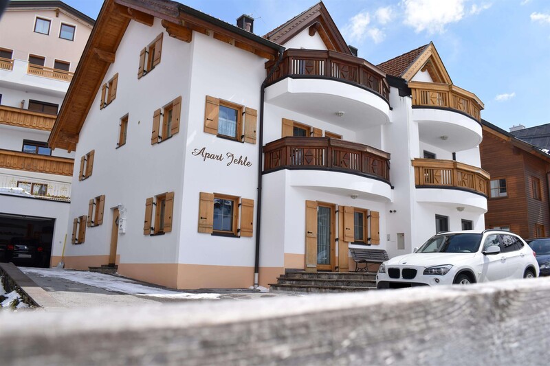 Nach der Kirche die zweite Straße links abbiegen (beim Shop 1601) ca. 100 m weiter zum Haus "Apart Jehle"
