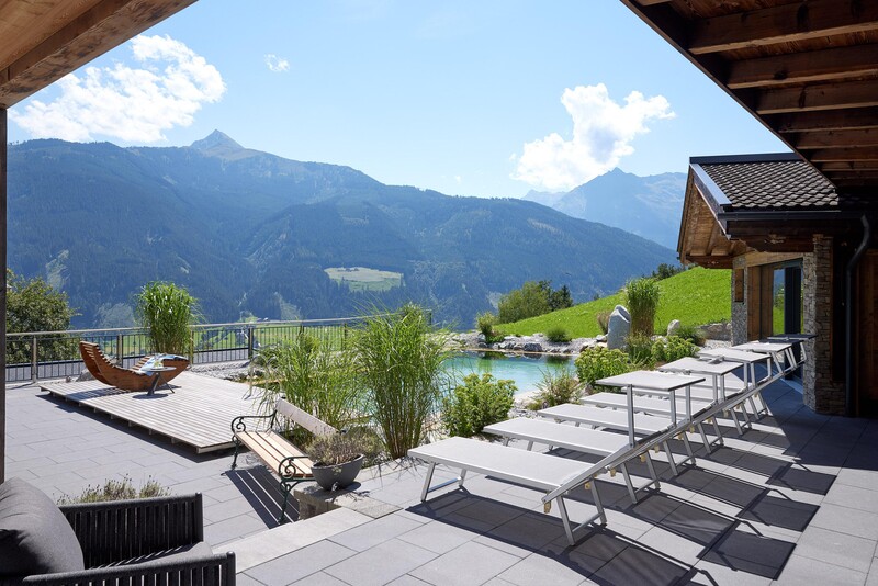 Ausklingen lassen Sie Ihren Urlaubstag auf unserer Terrasse bei einem Glas Bier oder Schluck Wein mit Ausblick auf unsere Berge bei Sonnenuntergang.
