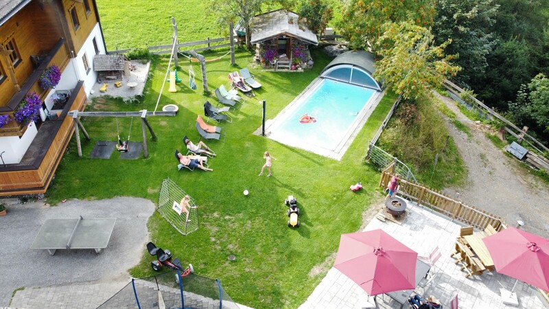 Familienfreundlicher Biobauernhof auf herrlichem Aussichtsplateau in ruhiger und sonniger Lage. Den Alltag vergessen, die Natur genießen und die Seele baumeln lassen. Unsere Tiere als gute Freunde erleben, mit uns wandern, am Abend grillen und viel Spaß beim Spielen haben. Es erwartet Sie: Sonnenterasse, Liegewiese,Hängematte, Grillecke, Tischtennis, beheizbarer Schuhraum, Rodelmöglichkeit, Kinderspielplatz u. -wiese, Gartenhäuschen, Schwimmbecken überdacht(30 m²). Tiere am Hof/Zweitbauernhof/Weide: Katzen,Hühner,Hasen,Hund,Mutterkühe,Kälber,Pferd. Eigene Trinkwasserquelle die 1 Mal Jährlich kontrolliert wird. Komfortabel ausgestattete Wohnungen. Unser Hit: Hochkönig Card, Almwanderungen vom Hochkönig Tourismus und Brötchenservice. Das Mitbringen von Hunden ist nur gegen Anfrage und einen Aufpreis erlaubt. (20 Euro/Tag und Hund ohne Verpflegung)