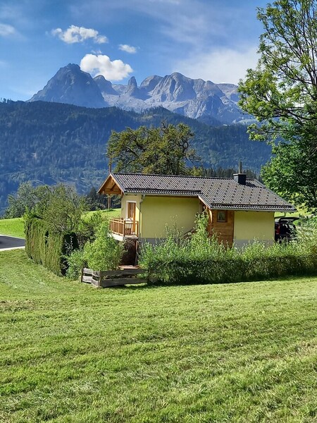 Umgeben von Bergwiesen genießen Sie den Ausblick auf das Massiv des Hochkönigs, das Tennengebirge und den Hochgründeck.